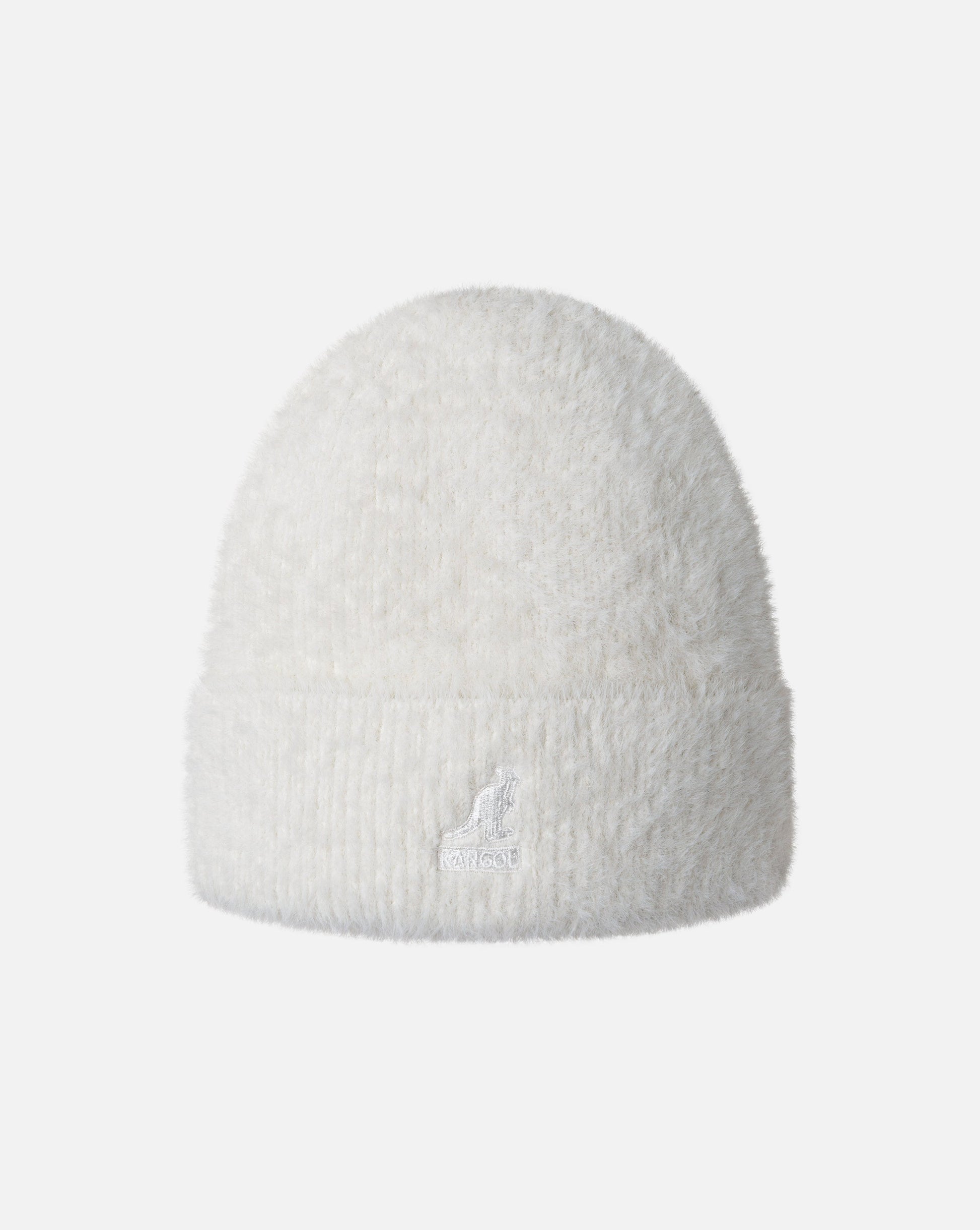 Kangol faux fur Muetze, Weiß. Aufgenähtes Logo.